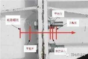 (4) 施工完毕后,地脚螺栓外露长度宜控制在70-80mm 内,用两个螺母紧固,并用黄油进行密封加以防腐保护。杆件安装起来后,紧上螺丝之前,加垫片,建议每个螺杆安放两块方形垫片,防止加固螺丝时,垫片受力变形,如下图所示: