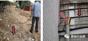 该方式电源的接头在架空的电力公共线上,然后通过管道移到监控的杆件上;这种接电方式在学校规划比较完善的地方,但由于客观的环境限制,埋在地表下方的管道没有任何标识,容易出现人为的开挖碰到,所以建议:
