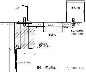 (6)室外配电箱及杆件都应接到此接地极上。