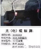 (2)敷设在室外线型较粗的光缆、电缆应挂标志牌作标记,机房、设备箱、用户端都需挂牌标识,人(手)井内应挂光、电缆标识牌,标牌的可参考以下样式制作,如下图: