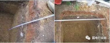 勘察现场,规划好埋管线路,对于过路管道,采用顶管技术;对于人行道和绿化带开挖的线槽,应遵循如下要求。