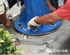 基础埋好后应先进行保养,水泥冬天保养7 天,夏天保养 5 天,,保养完成后安装立杆、配电箱和接地体。